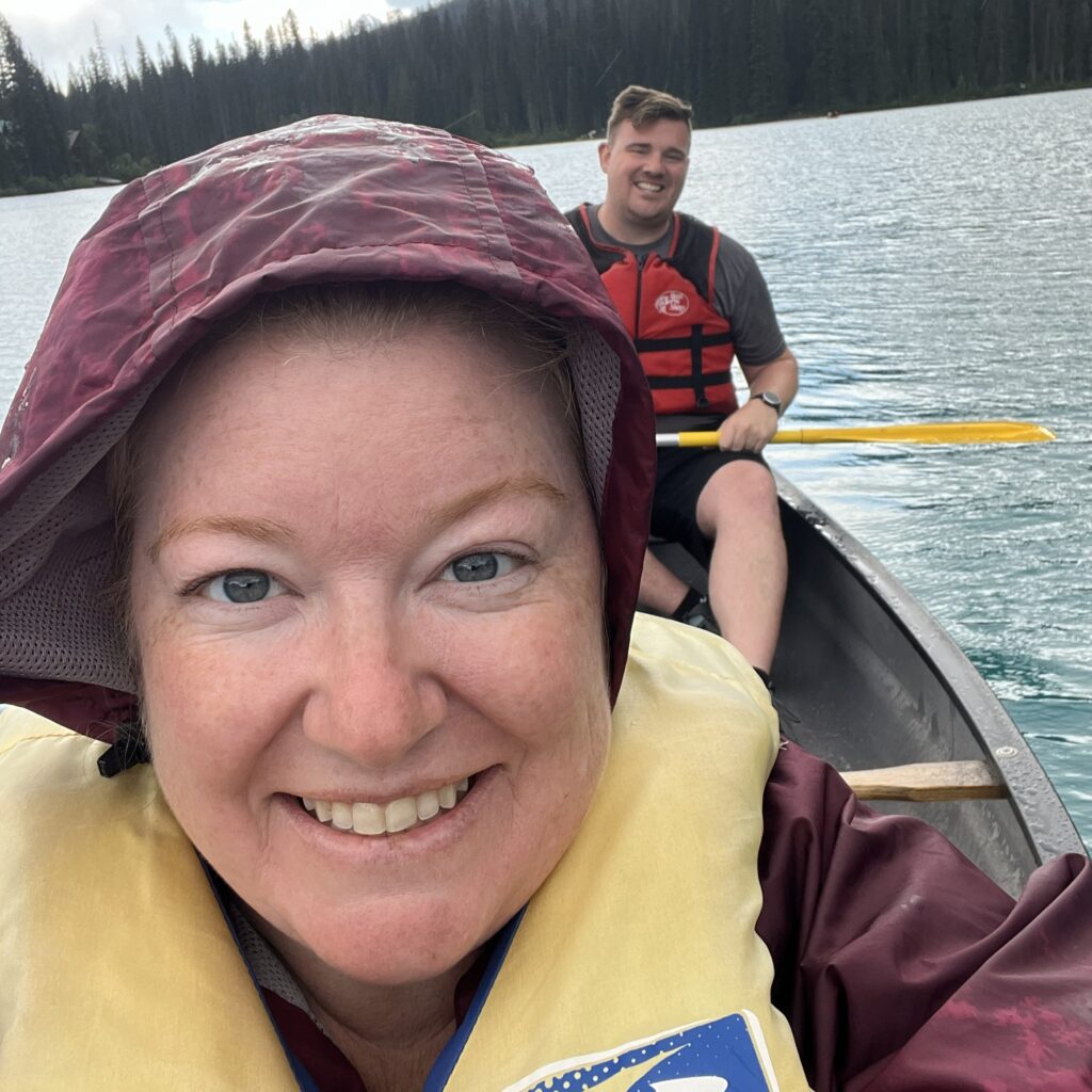 Selfie from the canoe! The weather started to clear up a little.