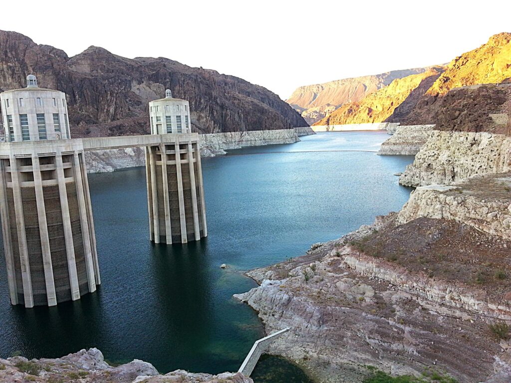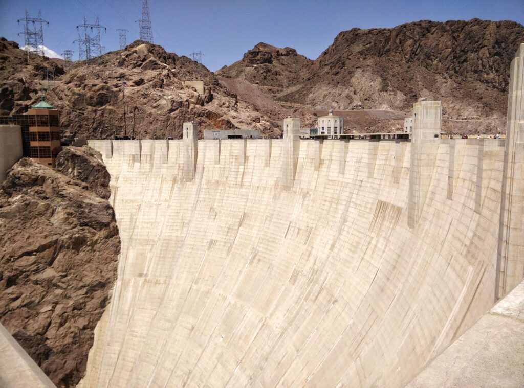 Lake Mead is the vast reservoir formed by Hoover Dam and is the largest reservoir in the United States by volume. It provides water, recreation, and dramatic desert scenery, making it an essential part of the Hoover Dam landscape. This photo is from around 2013, the water levels were much higher back then.