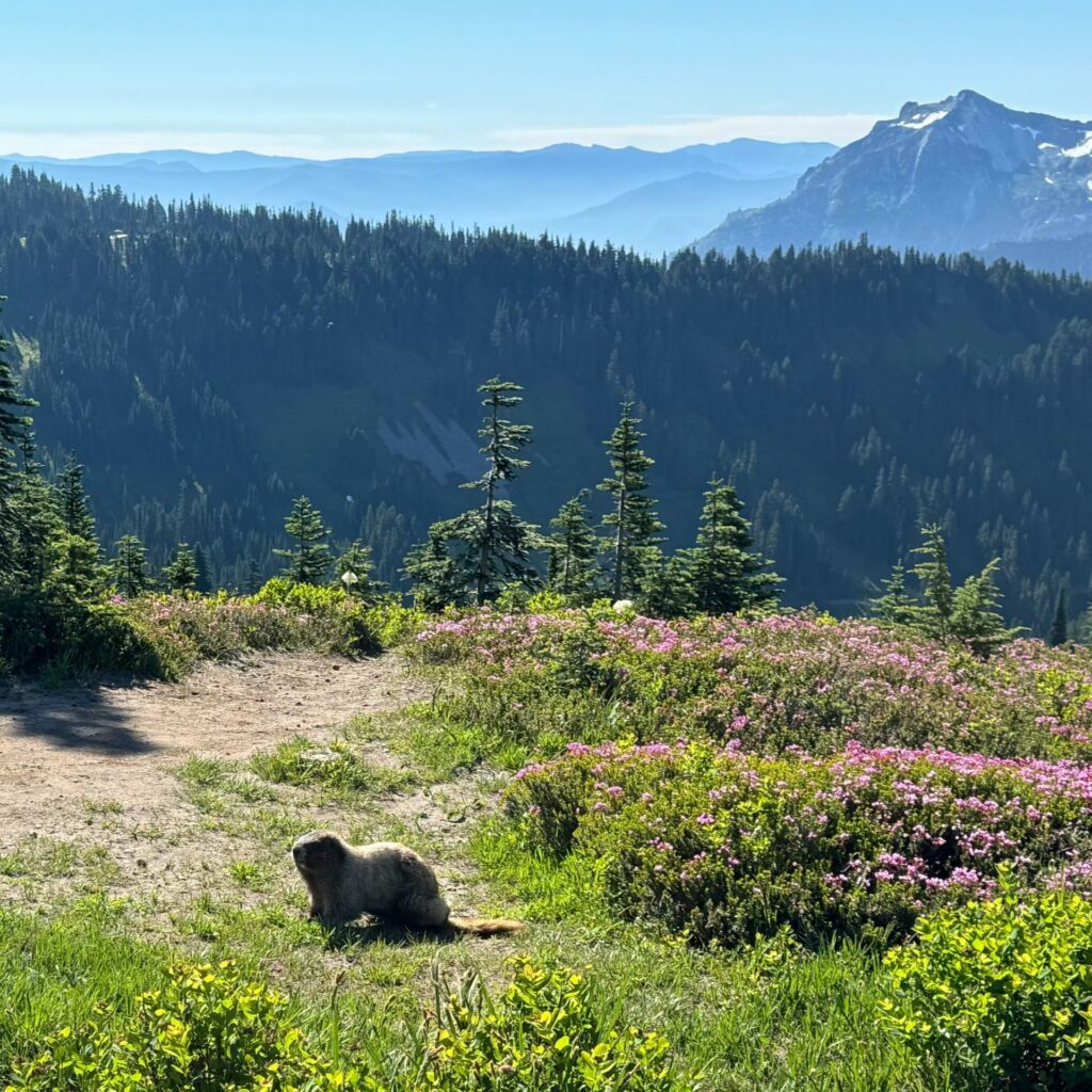 Keep an eye out for wildlife along the trail we spotted a marmot soaking up the sun in the alpine meadows, a common and fun sight around Paradise.