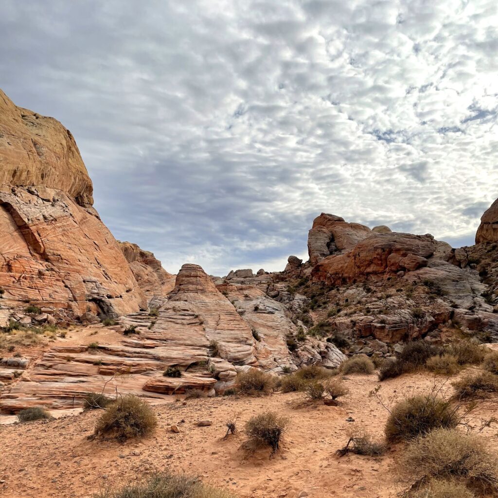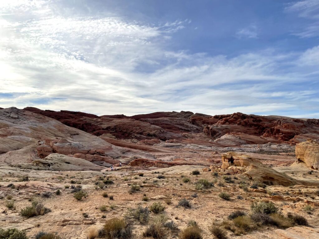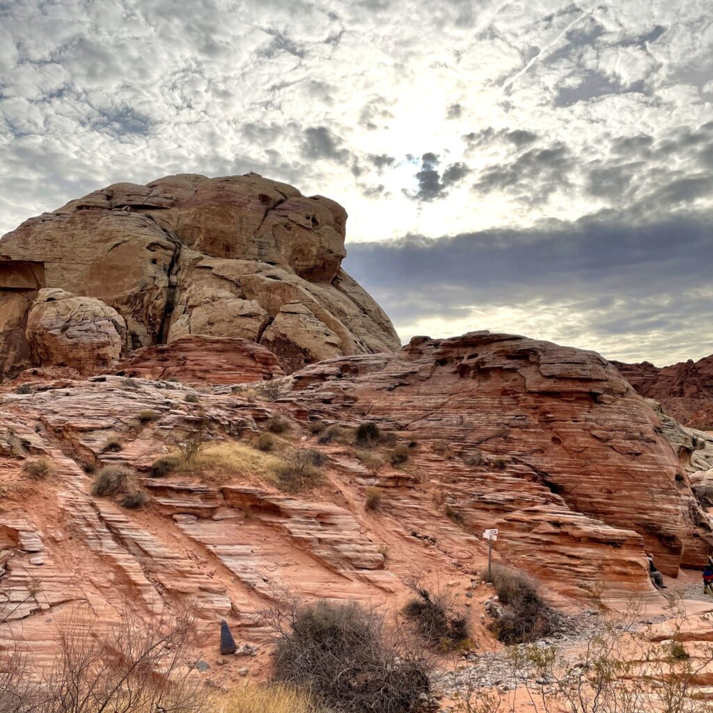Valley of Fire is perfect for visitors who enjoy scenic stops with minimal walking, as the main park road and Valley of Fire Highway offer multiple pull-offs and viewpoints where you can take in sweeping desert views right from your car. For those wanting a closer look at the park’s unique geology, hiking provides a more immersive experience, with generally short but exposed trails that lead through vibrant red sandstone formations, narrow washes, and wave-like rock patterns. We decided to hike and here I highlight two of the hikes we completed.